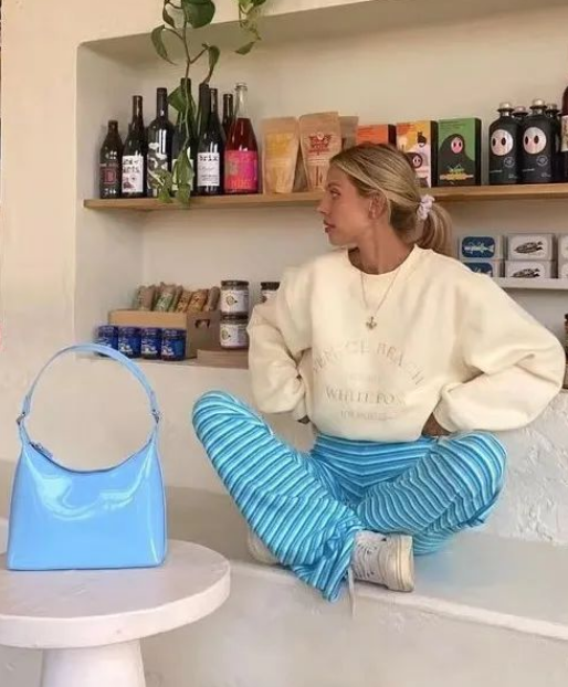 And this is a good example of how to wear a sweatshirt correctly: the contrasting colors make you look younger and younger. The whole top and bottom have a sense of curve, and the sweatshirt is not too long to cover the body, and it highlights its casual and simple style.