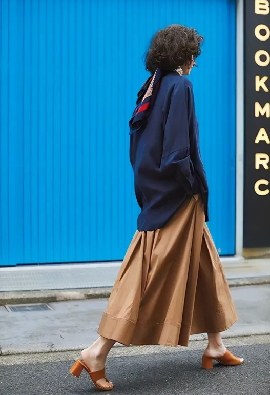Because I am too tall, wearing a loose skirt will make my lower body look too elegant and hollow. Choosing this kind of slightly slim-fitting skirt not only shows off your tall figure, but also creates a clear proportion between the upper and lower body.