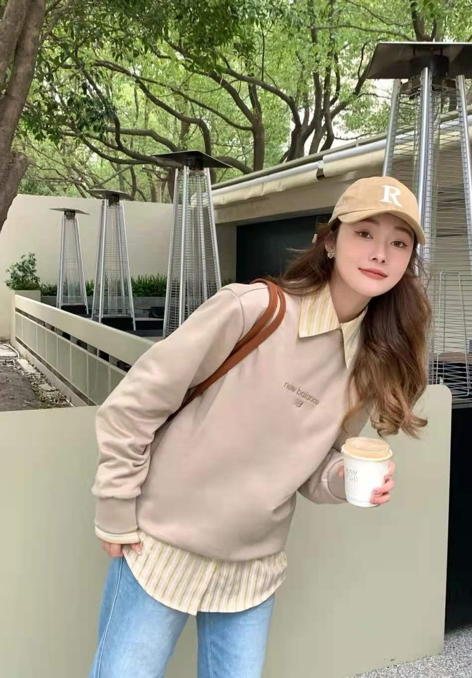 With the popularity of the “layering” trend, sweatshirts are often layered with various items, such as white T-shirts layered inside sweatshirts, shirts layered inside sweatshirts, windbreakers layered outside sweaters, and jeans layered outside sweatshirts. Jackets and more.