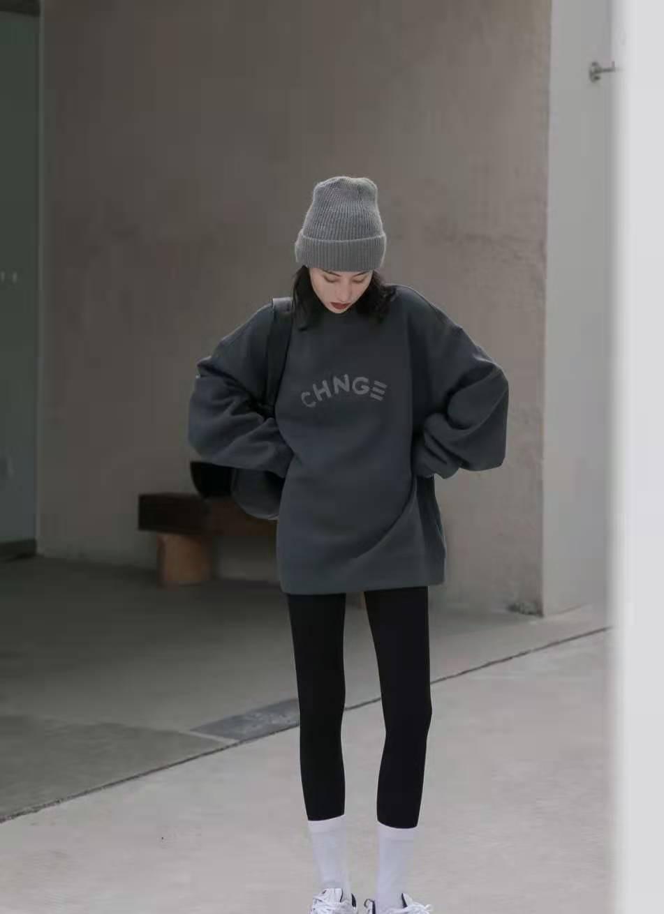 It can be seen that sweatshirts When matching accessories, don’t focus on quantity. Choosing the right accessory is better than matching a hundred items. As for how to choose the right accessory, “choose according to the color of the clothing” is the most practical thing I have ever seen. , the most practical method, this is the same as “when matching a sweater with bottoms, refer to the color pattern of the sweater”, just like this “gray knitted hat + gray sweatshirt + black leggings” style, simple but not simple.