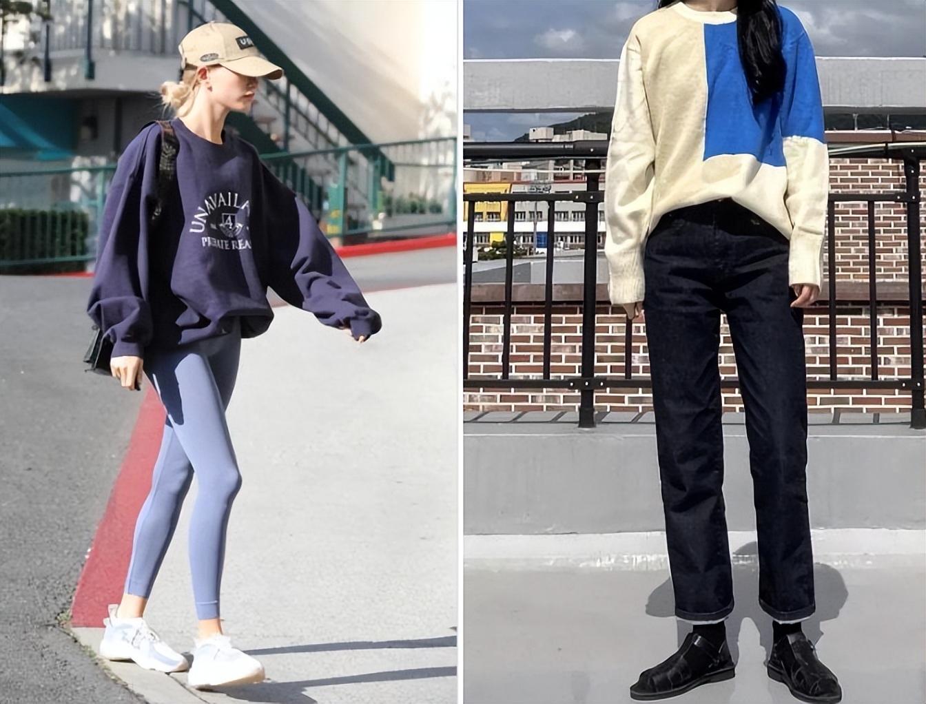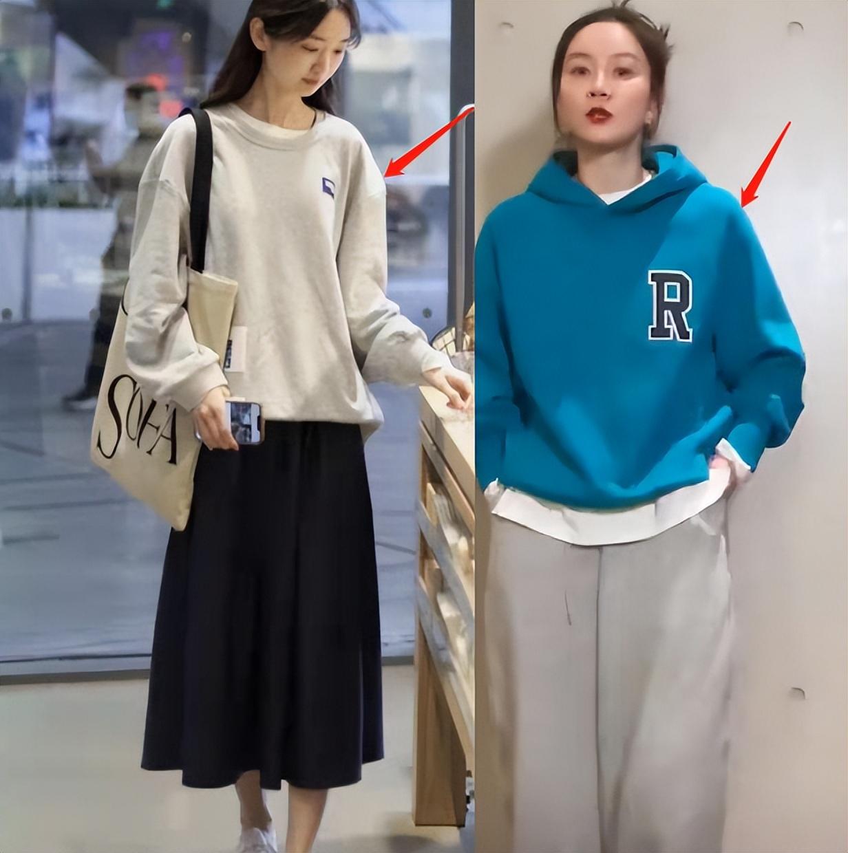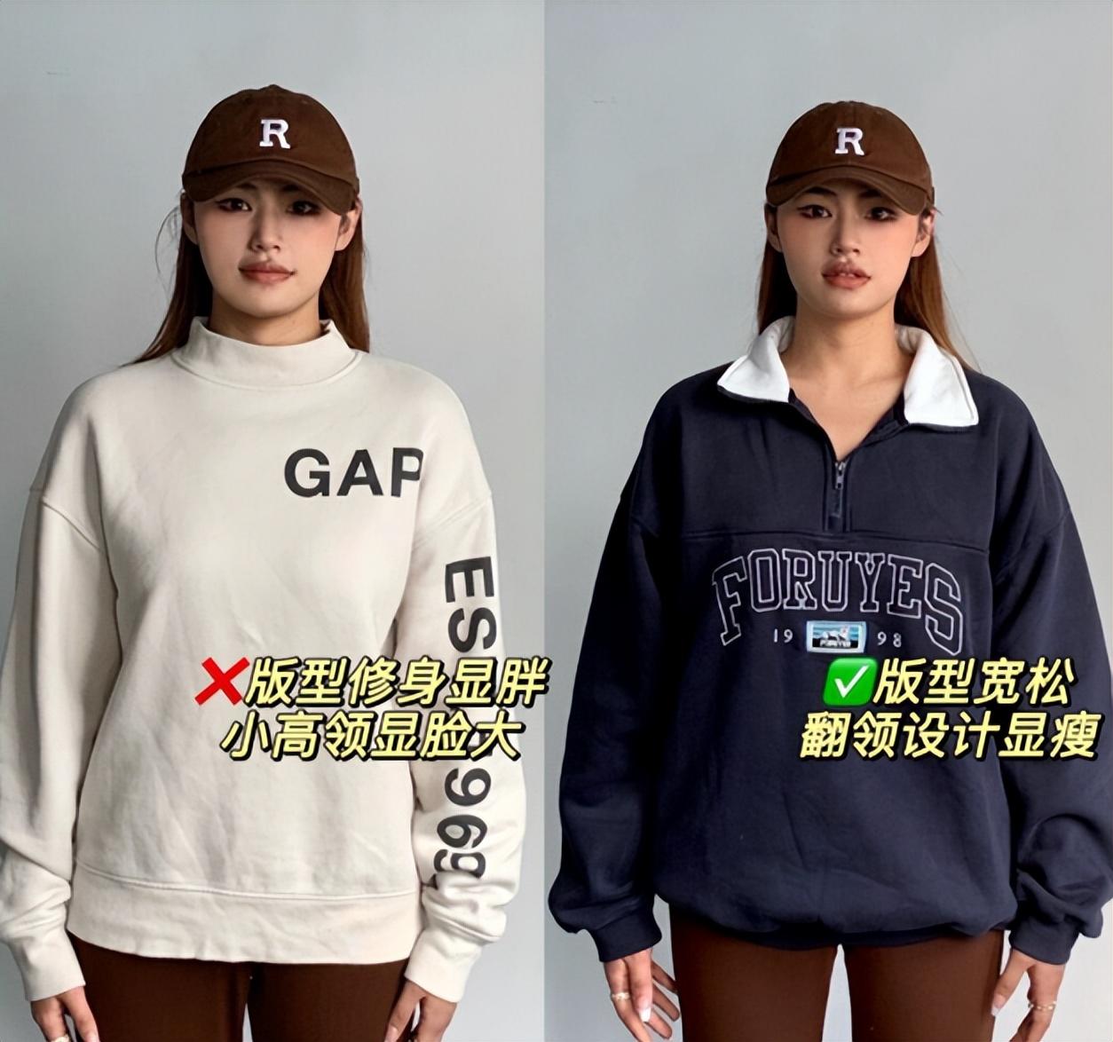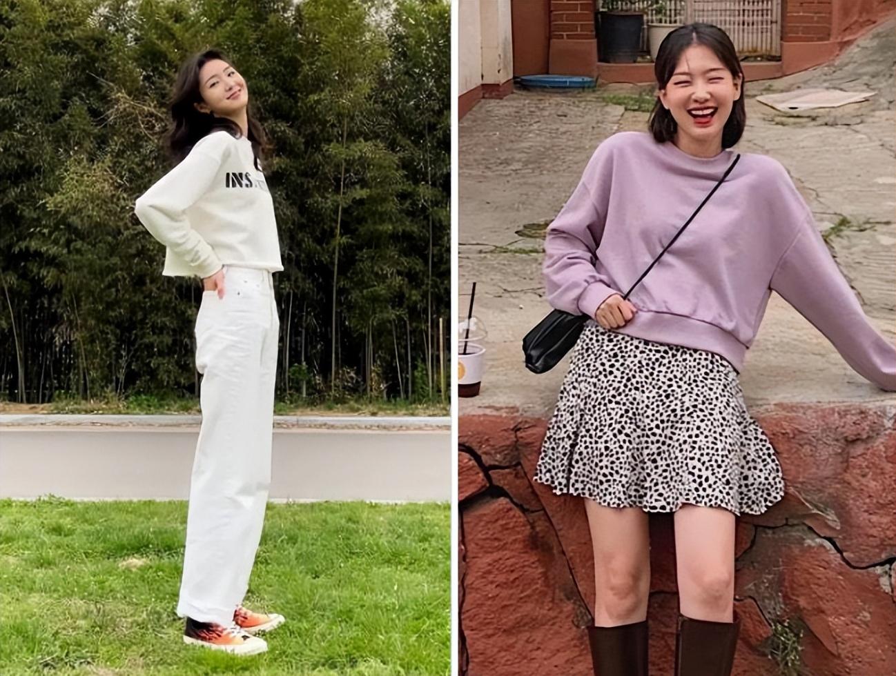 We can see from these two sets of comparison pictures that Thin girls wear raglan sweatshirts, which are loose and shapeless.