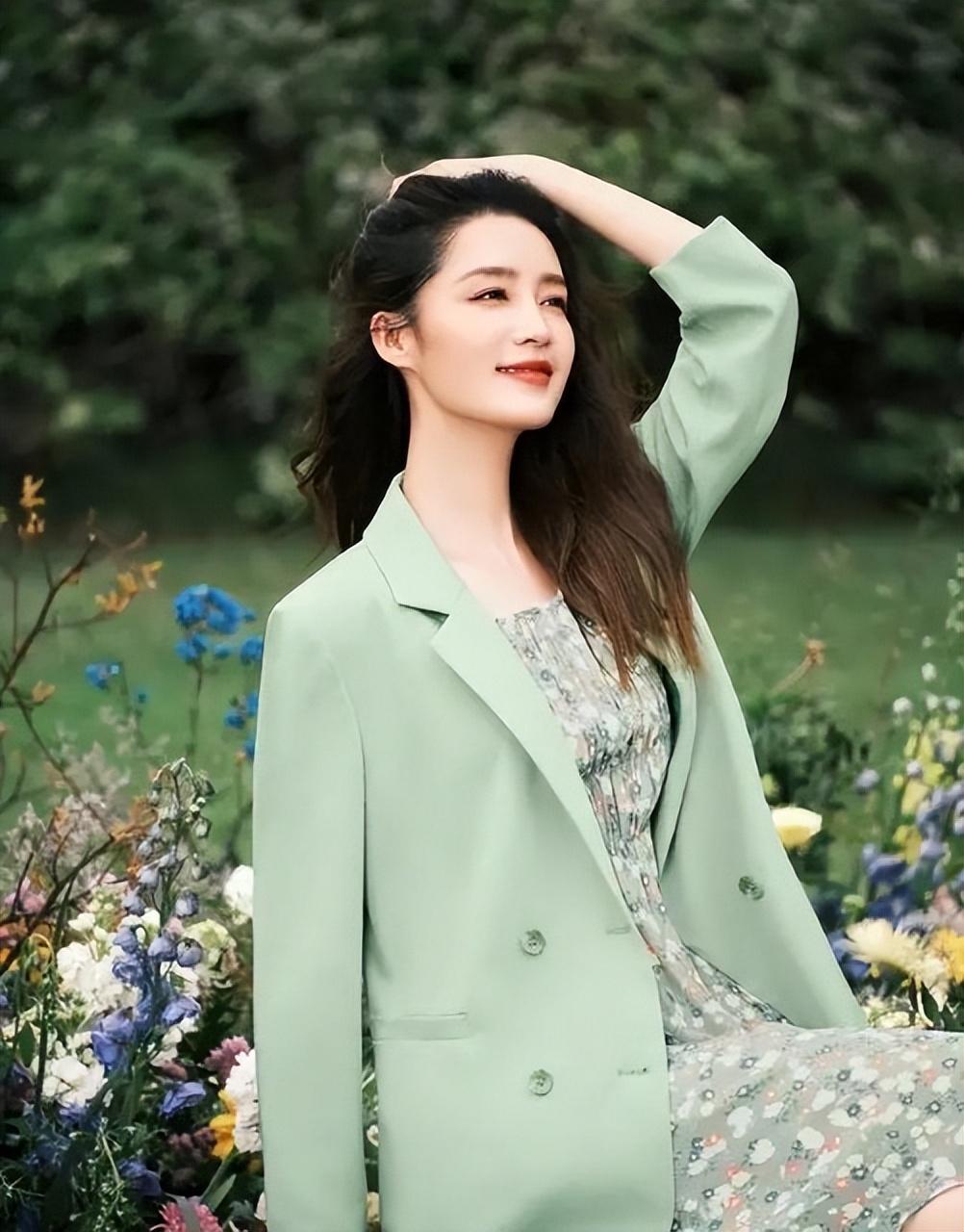 If you want to wear “suit + floral dress” differently, you might as well continue to learn from Li Qin, Try a green suit jacket + green floral dress. The fresh and elegant green color not only makes your skin whiter, but also gives the “suit jacket + green floral skirt” look a strong summer atmosphere.