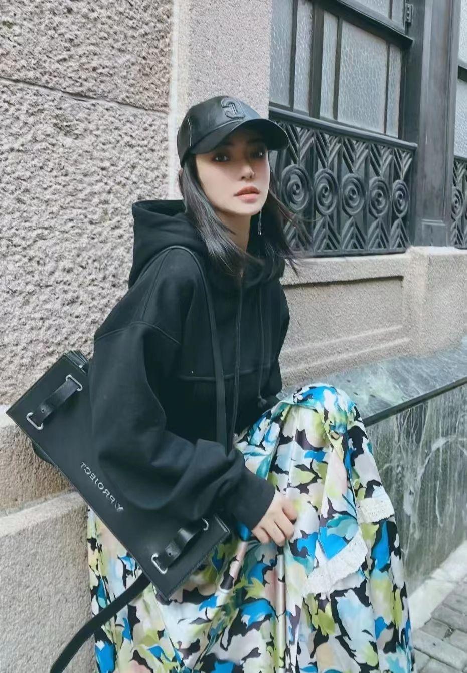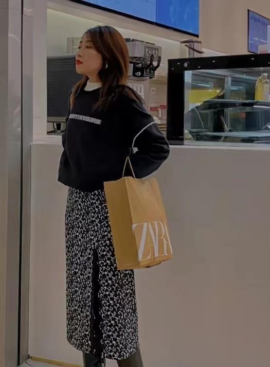 As for how to wear “sweatshirt + floral skirt” well, the easiest way is to choose the color of the sweater based on the background color of the floral skirt. It can achieve the purpose of avoiding fancy dressing, and secondly, it can ensure the harmony and unity of the overall shape.