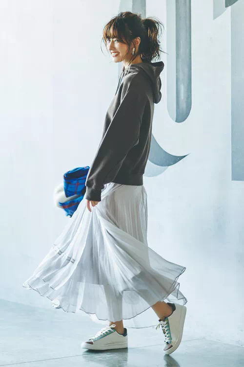Among many basic items, the style of sweatshirts can be considered changeable. Different styles can be created through different styles. Although the style of sweatshirt is too neutral, when paired with a skirt, it can show a sweet style or an age-reducing style. The style can be achieved Diversity can make outfits less rigid and break the bottleneck period of outfits.