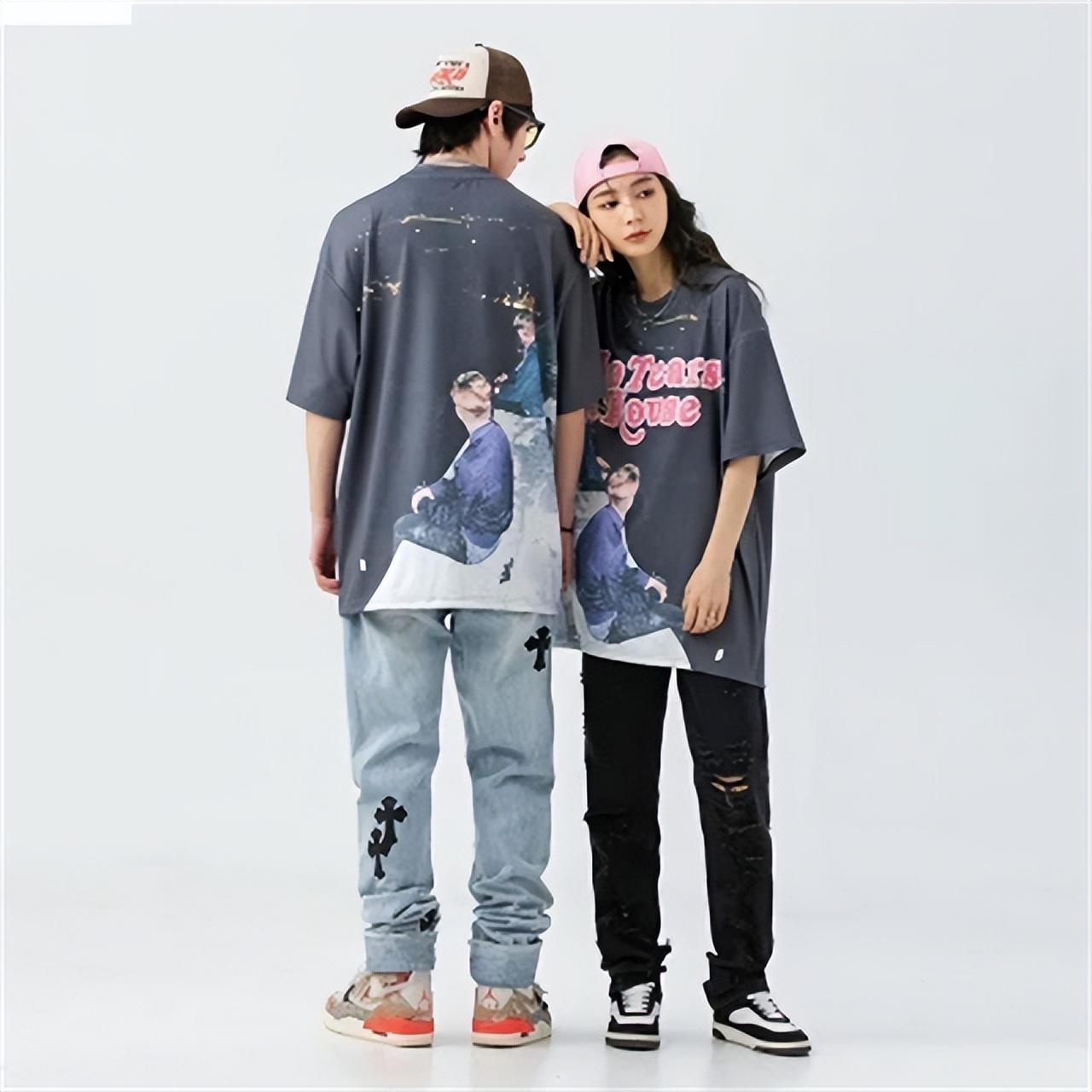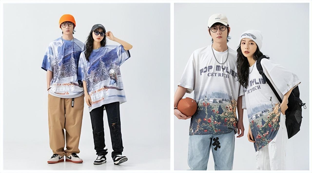 Large-area printed T-shirts, cool and stylish on the streets. Whether it is a graffiti-style design or an oil painting-like picture design, the rate of return is high.
