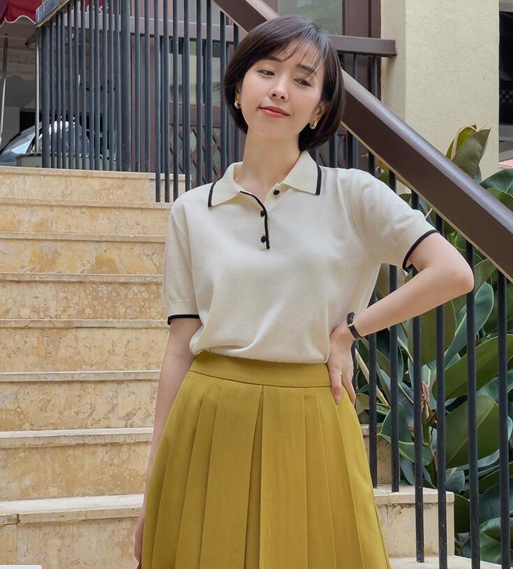 1. POLO shirts made of knitted material can give people a gentle and elegant feeling, and are more suitable to be matched with a skirt to achieve the effect of 1+1>2.
