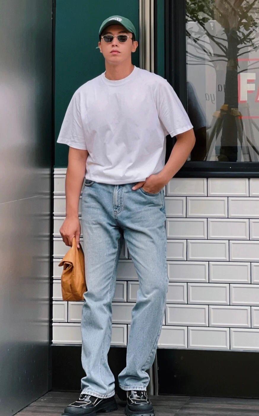 Outfit Guide 02→White T-shirt + denim casual pants