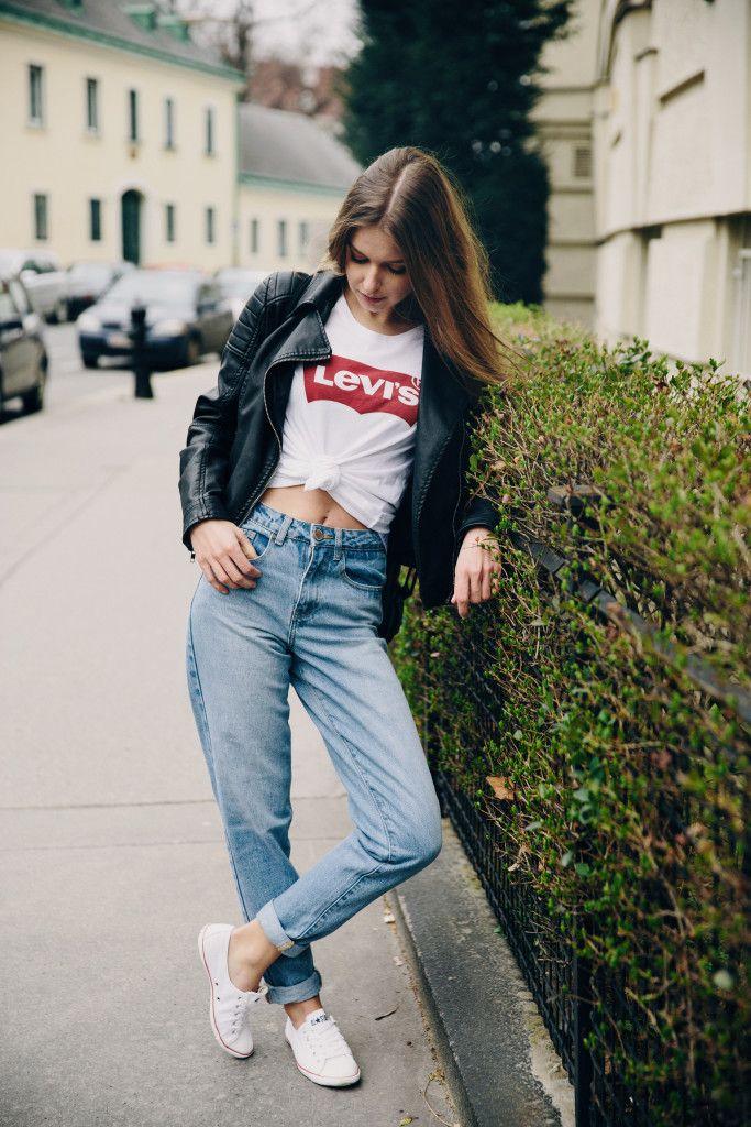 If you feel that tucking in the hem of your white T-shirt will make your bottom look a bit crowded and rushed, thentuck in a small corner It’s also completely possible, and it can also highlight the waistline.
