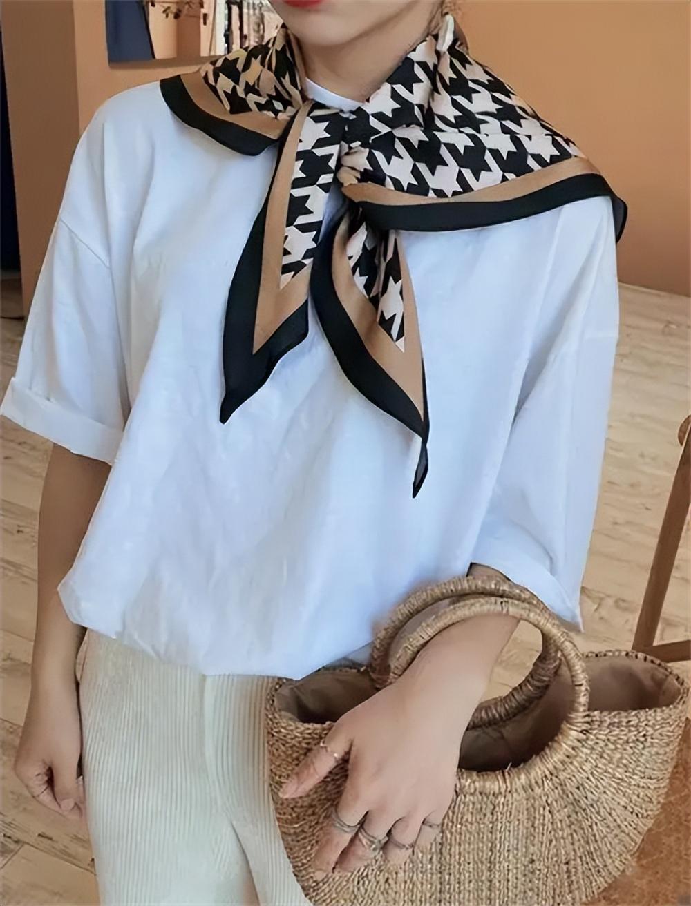 Adding a silk scarf to a T-shirt that looks like a blank drawing board is a great way to create a new look. Your unique personality.