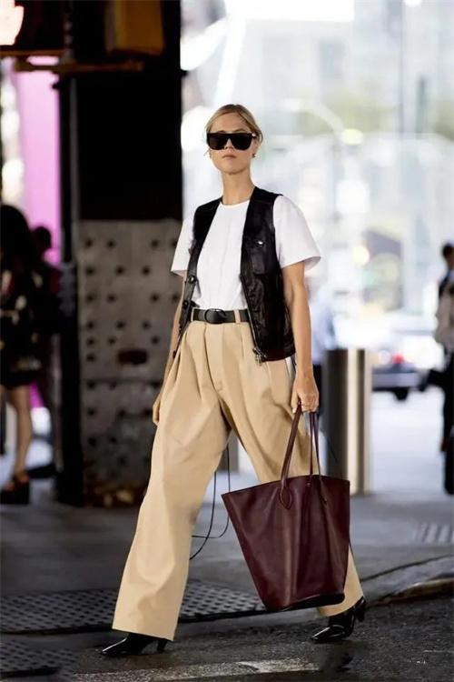 The shape is also very loose, and not many people are suitable to wear it directly. It will make you feel like you are wearing pajamas. Manually cinch the waist of a T-shirt, which not only looks simple and capable, but also highlights the curves, making it look much better.