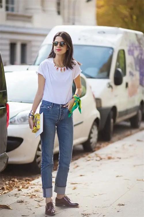 There are many tutorials on “transforming” T-shirts on the Internet. Rolling up the cuffs like the following is also a “decoration” method to make the arms look longer and the whole person more lean.