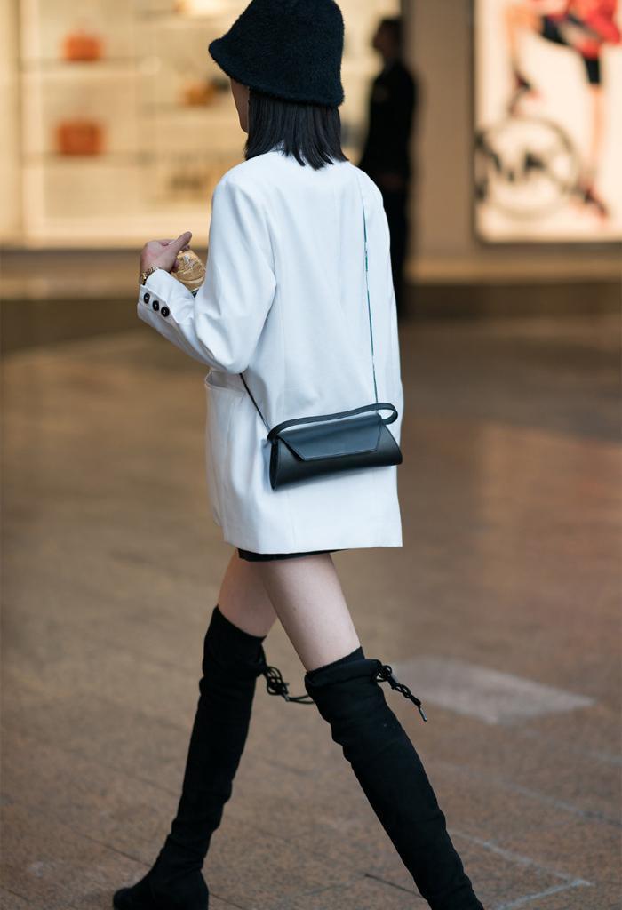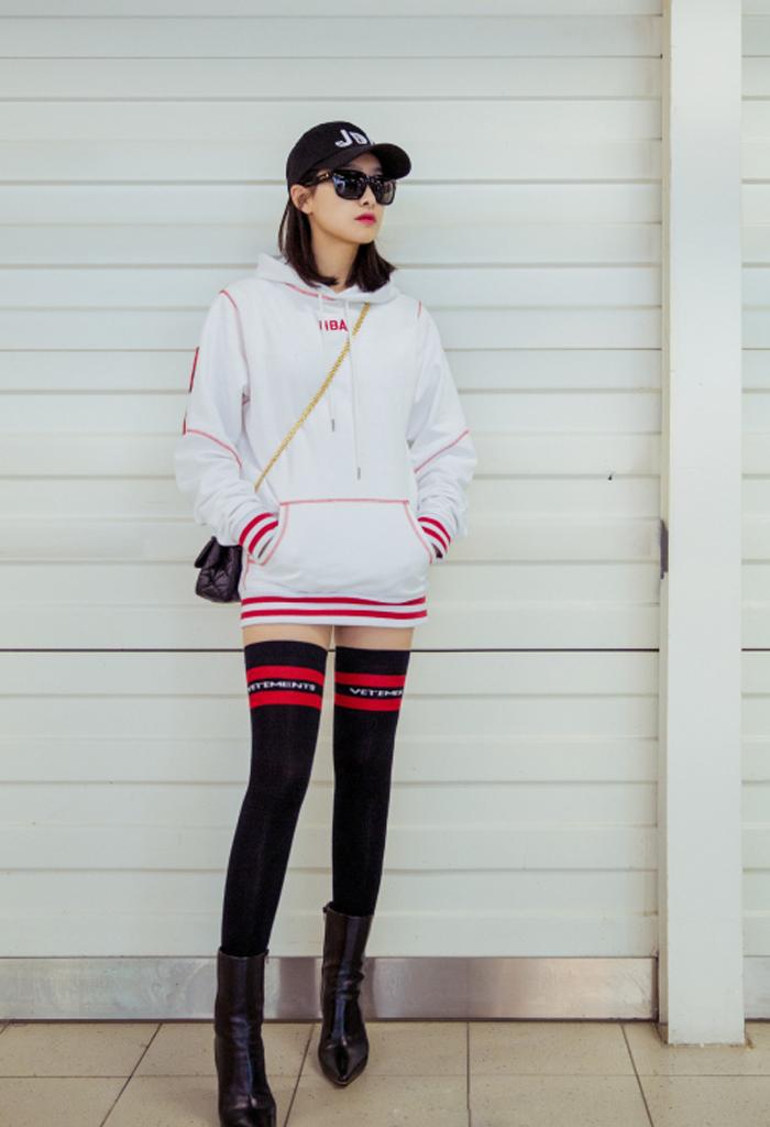 Girls who are worried about the inconvenience of sitting when wearing knee-high boots can wear a pair of knee-high socks with high boots. High boots also have a warm effect and are also very suitable for wearing when you have a concave shape. For example, Song Qian’s look is a sweatshirt paired with over-the-knee socks. The eye-catching color matching elements have a street feel. Simply wearing a pair of sunglasses can highlight her trendy personality.