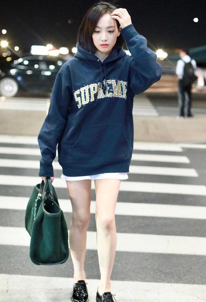 The air in April has become much warmer , there must be many girls who are eager to try it out. They want to show their legs and wear short skirts, but they are worried that they will catch cold easily if they wear too little. At this time, a sweater that is both warm and fashionable can dispel your worries. It can keep your upper body warm without hindering you from showing off your beautiful legs. When Victoria Song walked to the airport, she wore a hooded sweatshirt paired with a white skirt, which made her legs look long and slender. Simply wearing a pair of small leather shoes also made her look very stylish.