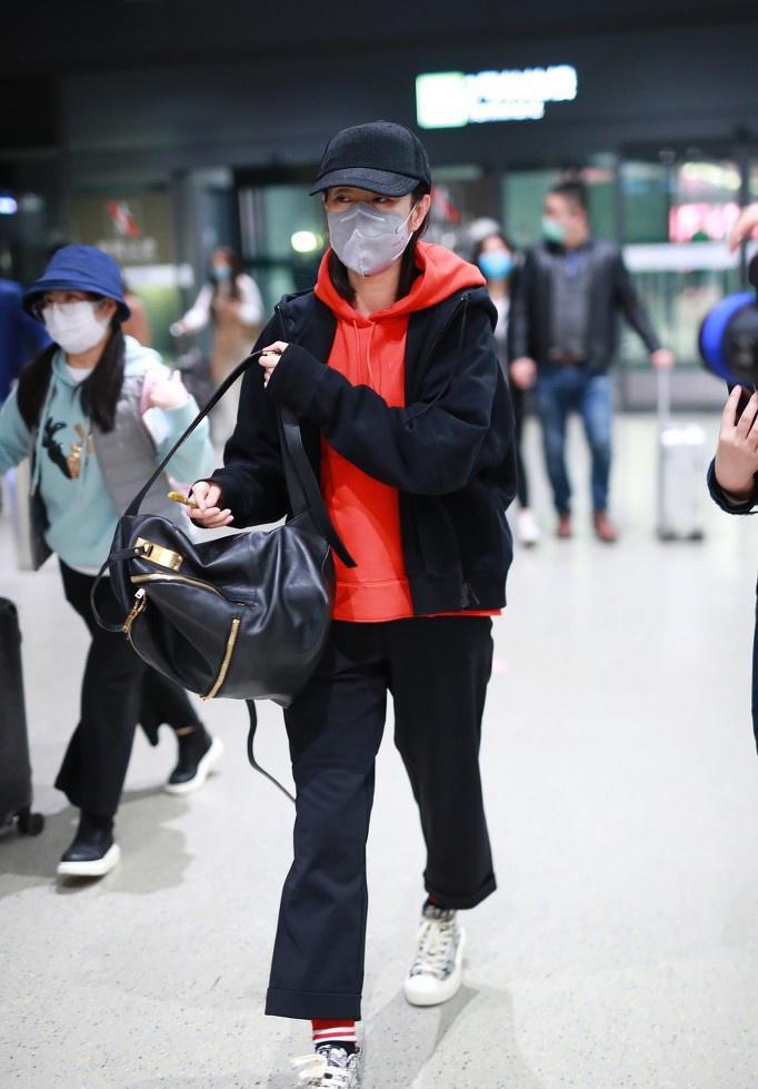 Hooded and round collar are two common styles of sweatshirts. The former is lively and reduces age, while the latter is simple and neat. Each has its own style and characteristics. The most photographed item is the hooded sweatshirt. With the hat embellished on it, the design will not be too monotonous and boring. When layered with other items, the layering will be more distinct. The sweatshirt in Liu Mintao’s look is a hooded style, and it is eye-catching red. It is very eye-catching and adds a bit of sunshine and vitality to the look. When paired with a black jacket, it will not be too eye-catching and high-profile. The calm black just weakens the publicity of red. It steals the spotlight without being deliberate. The most important thing is that it also reduces age. An aunt can instantly become a girl. déjà vu.