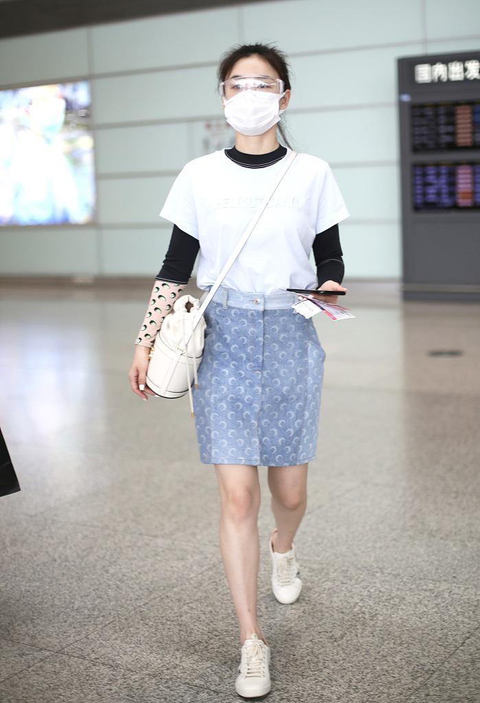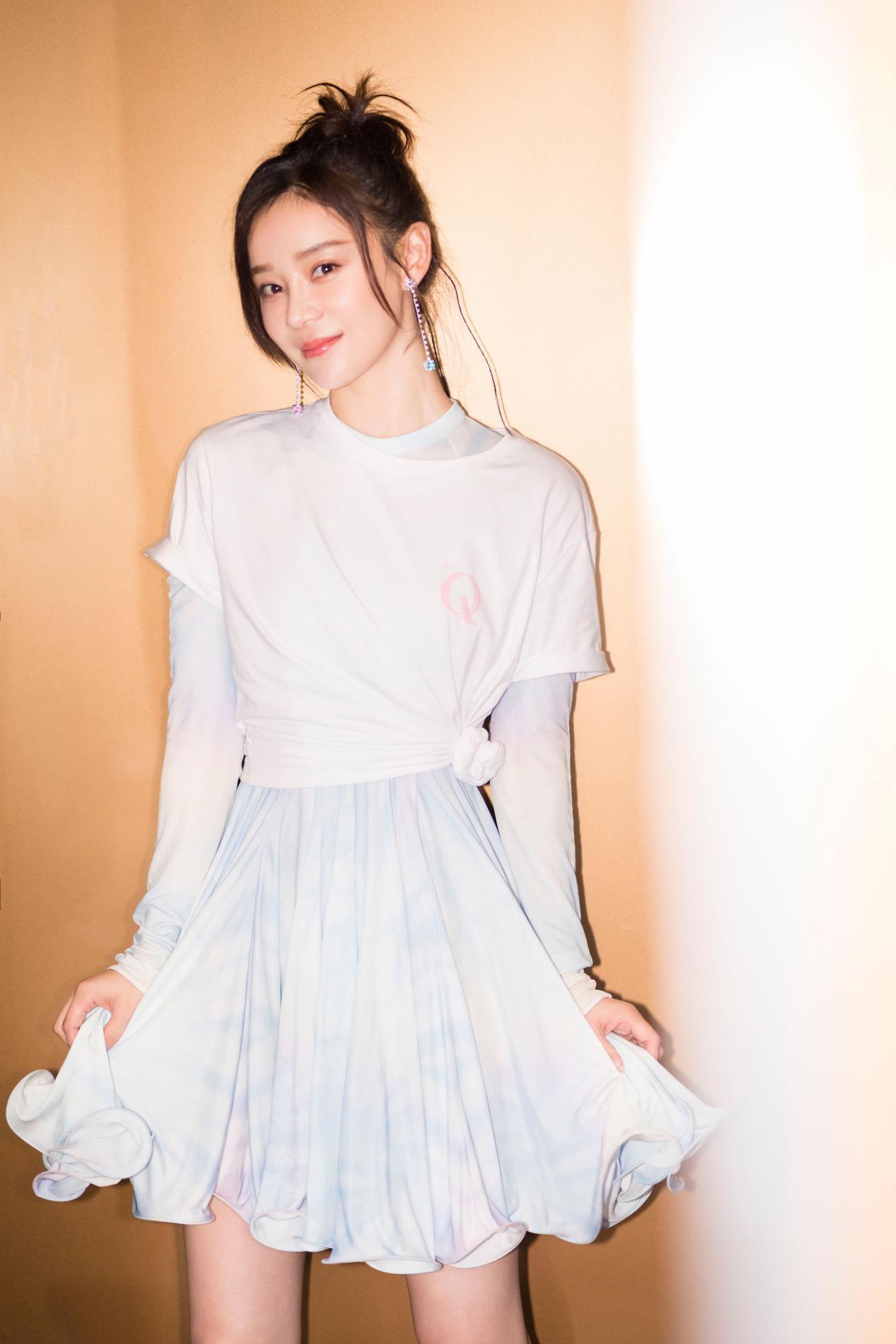 Although wearing underwear outside is very attractive, it is not suitable for daily styling and tends to give people a pretentious and exaggerated look. The look of a dress + T-shirt is more suitable. Really wearable, the sweetness of the dress can just make up for the overly neutral design of the T-shirt, making the look more feminine. Moreover, some dresses are loose in shape, and the waistline is not properly handled, making it easy to wear them in a lower proportion. To create a “dwarf” look, you can knot the hems of stacked T-shirts like Yuan Shanshan, and easily raise the waistline to create a tall look.