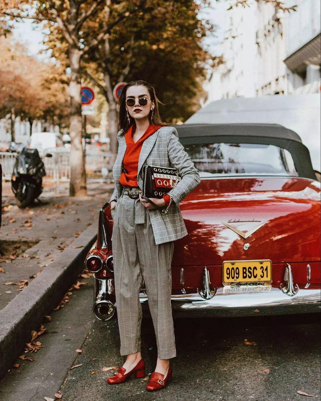 Some people think that the styles of sweatshirts and suit pants are too different, and the combination will be very abrupt and different. In fact, this is not the case. There are rarely mistakes in the matching of sweatshirts with simple and neat designs, and they can control the differences. Different styles of bottoms can show a different sense of fashion. I really feel that the abruptness is too strong, so it is better to layer jackets of the same style. Like this, choose suits and suit pants of the same style to match the sweatshirt, which is decent and generous without losing the sense of vitality. With the embellished red sweatshirt, the look will not be too lifeless, but a little retro.