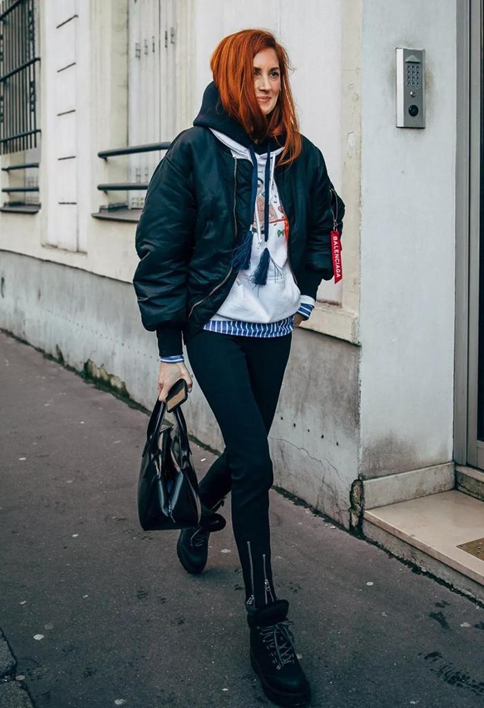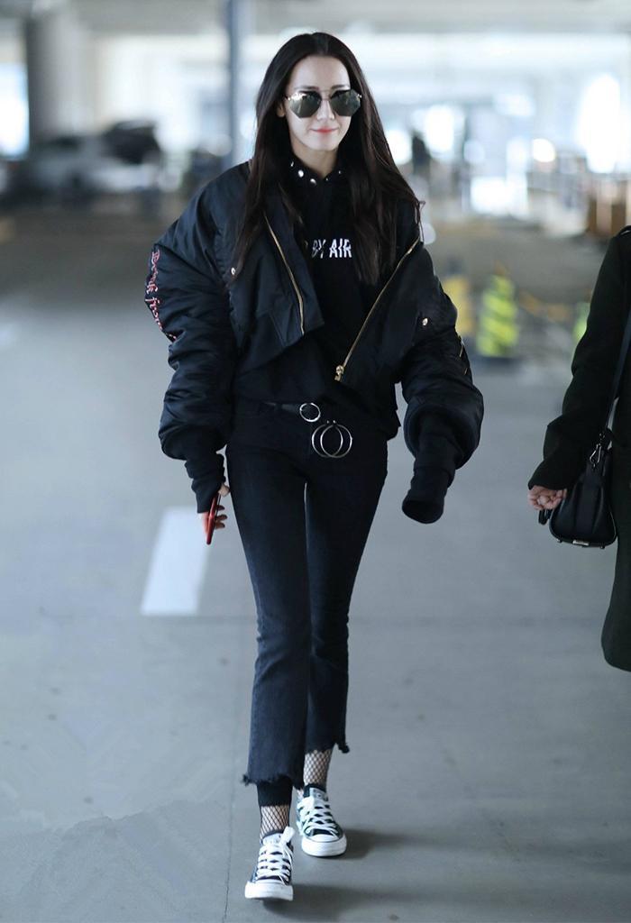 The bomber jacket was first used as a standard “battle uniform” for the Air Force. As designers changed their fabrics and styles After the revision, it gradually evolved into the current short-cut style. Not only does the upper body look handsome and stylish, but the short length design can also be used to optimize the wearer’s body proportions. It is a perfect match for a sweatshirt.One of the best choices. For example, Dilireba wore a sweatshirt and bomber jacket, paired with bootcut jeans. The overall pure black tone instantly transformed her into a cool girl, and it also had an obvious slimming effect.