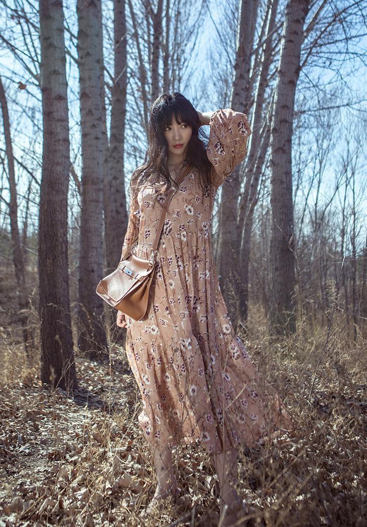If you want to wear a long-sleeved floral skirt with a light and elegant feel, the fabric will be a great help. Among many clothing fabrics, it is light and elegant. Very fluffy and breathable gauze fabric. The soft gauze quality sways with the wind and is full of elegance. It also has a perspective effect, which vaguely shows off the beautiful figure of women and adds a bit of sexy charm to the look. Because the gauze fabric is light and thin enough, even if it is The dark style does not look dull and heavy. Liu Yan wore a black gauze skirt to attend an event. The V-neck cut exposed her collarbone line.Eye-catching, the irregular skirt is more distinctive.