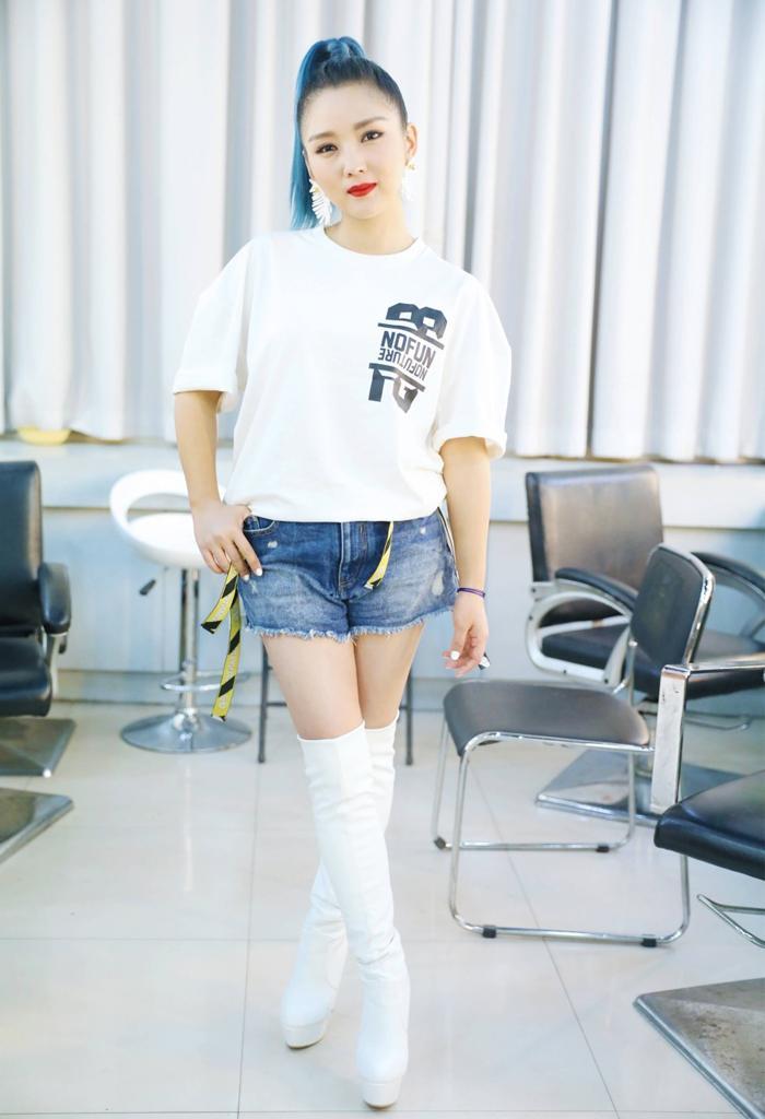 Girls with fat legs want to wear shorts to look slimmer. In fact, they don’t necessarily have to focus on the choice of shorts. They can choose shoes. For this reason, choose high boots that are above the knee length. The silhouette slightly fits the skin of the legs. You can easily make your legs slimmer and straighter, while hiding all the fat on your legs. They look good and fashionable. He Jie’s look is an example for us. She wears denim shorts with a pair of over-the-knee high-heeled boots. Combined with the pointed shoe design, it can visually extend the leg lines and make the legs more visible. long.