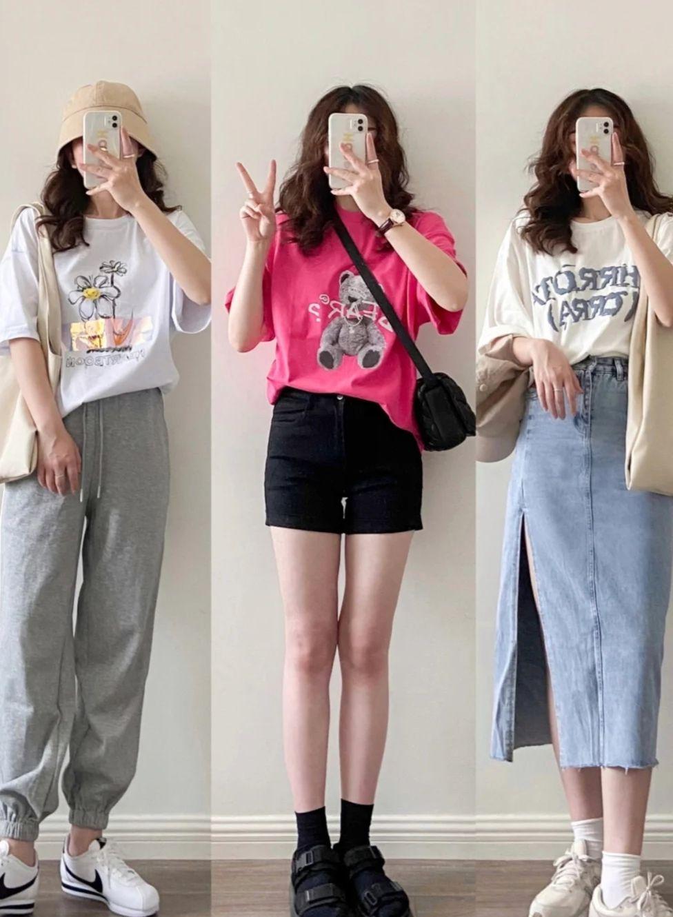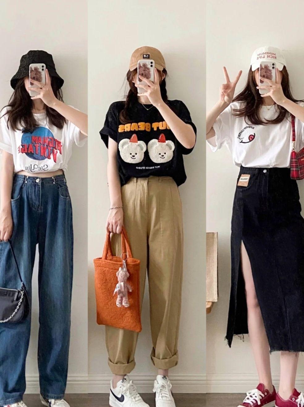 T-shirts can be divided into two types: solid color and printed. You can choose according to your own preferences. If you like minimalist style, wear solid color, which is simple and not fussy. People are intellectual and attractive, and can be used for multiple wears. T-shirts with superimposed printing or various interesting graffiti patterns can present a more colorful style effect, allowing you to show a unique beauty and create a girly feeling full of vitality.