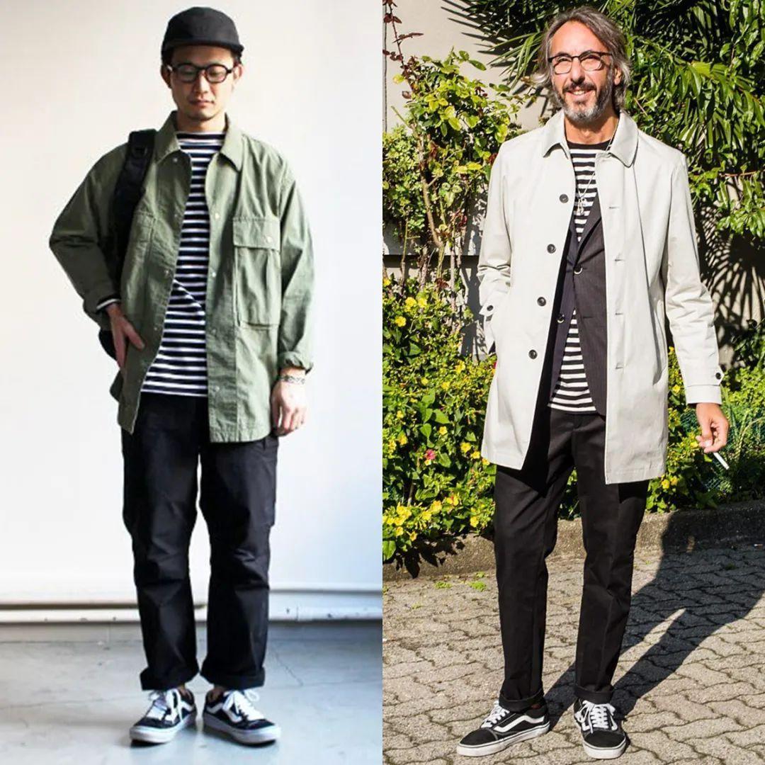 Pair an army green work jacket with a striped T-shirt, and the layering of the upper body will appear very good. At this time, the trousers can be simpler, and the light-colored trousers can be controlled, and the style will be very tasteful.