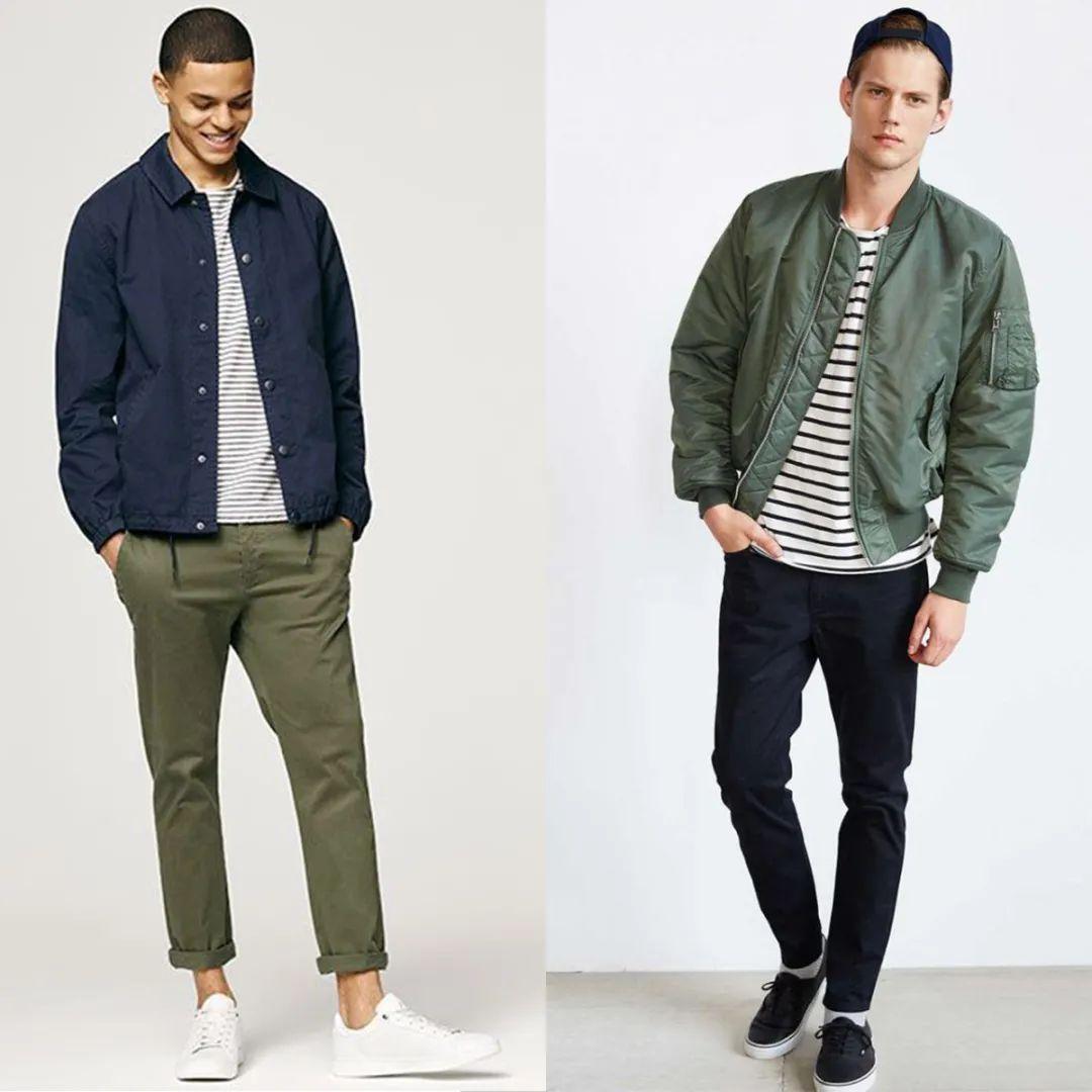 Many friends don’t choose the right inner wear when wearing windbreakers in spring. In fact, this striped T-shirt is A good partner. Generally, take a classic beige or khaki windbreaker as an example. Pair it with a blue and white or black and white striped T-shirt. The tone will appear very unified. At this time, choose a pair of dark trousers to create an overall artistic look. The fashionable atmosphere is easily revealed.
