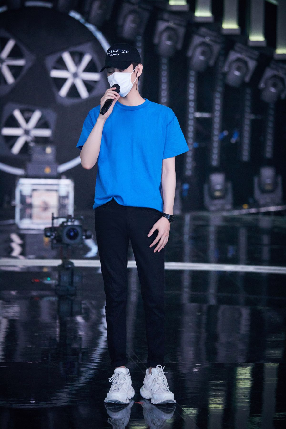 Of course, many people think that as an artist, even if you choose the simplest white T-shirt, you can look fashionable with your temperament. In fact, Wang Kai has also made template accessories for amateurs. . The addition of a crossbody bag is simple and low-key, which is not only very practical, but also makes the whole outfit more layered. The baseball cap greatly increases youthful vitality and makes the whole outfit very boyish.