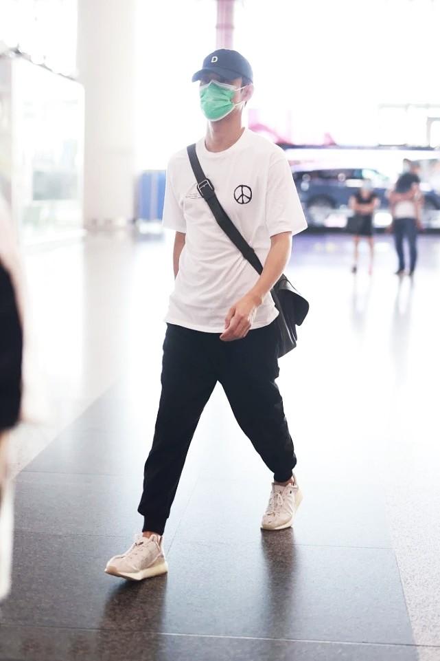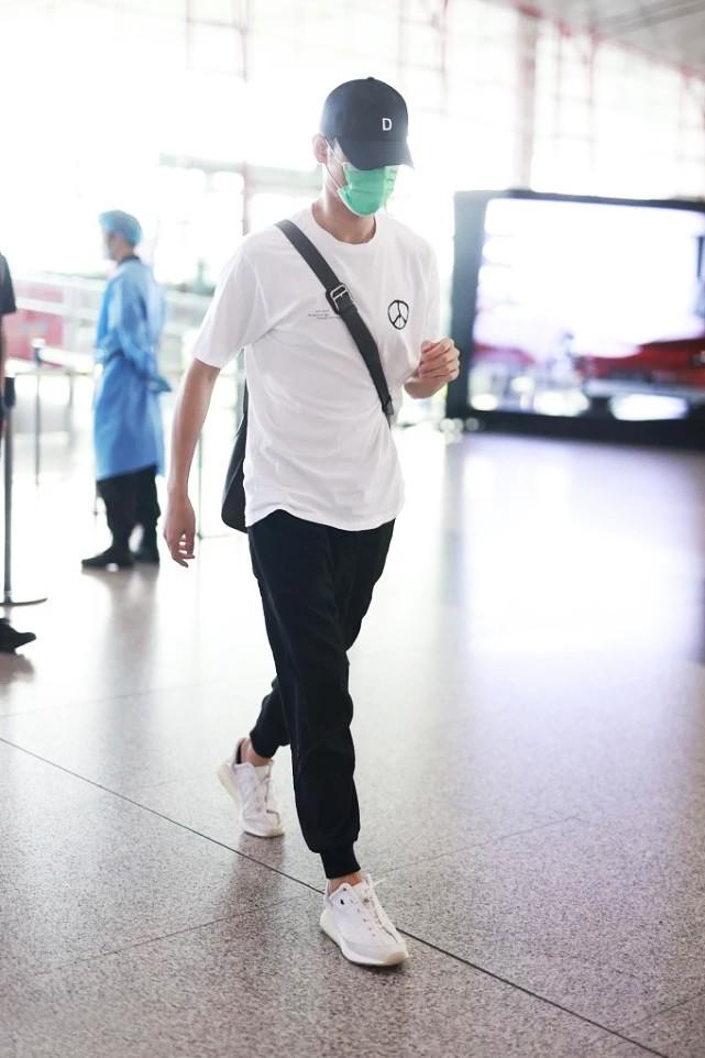 This time Wang Kai made a low-key appearance at the airport. He chose the simplest way of dressing. The white T-shirt that can be seen everywhere in daily life matches the sports style. Full leggings, simple and elegant yet still youthful and energetic, and paired with a baseball cap to add a trendy and cool vibe. Men over the age of thirty can use Wang Kai’s outfit as a template to easily create a casual and age-reducing effect.
