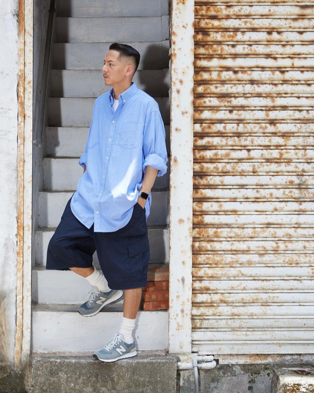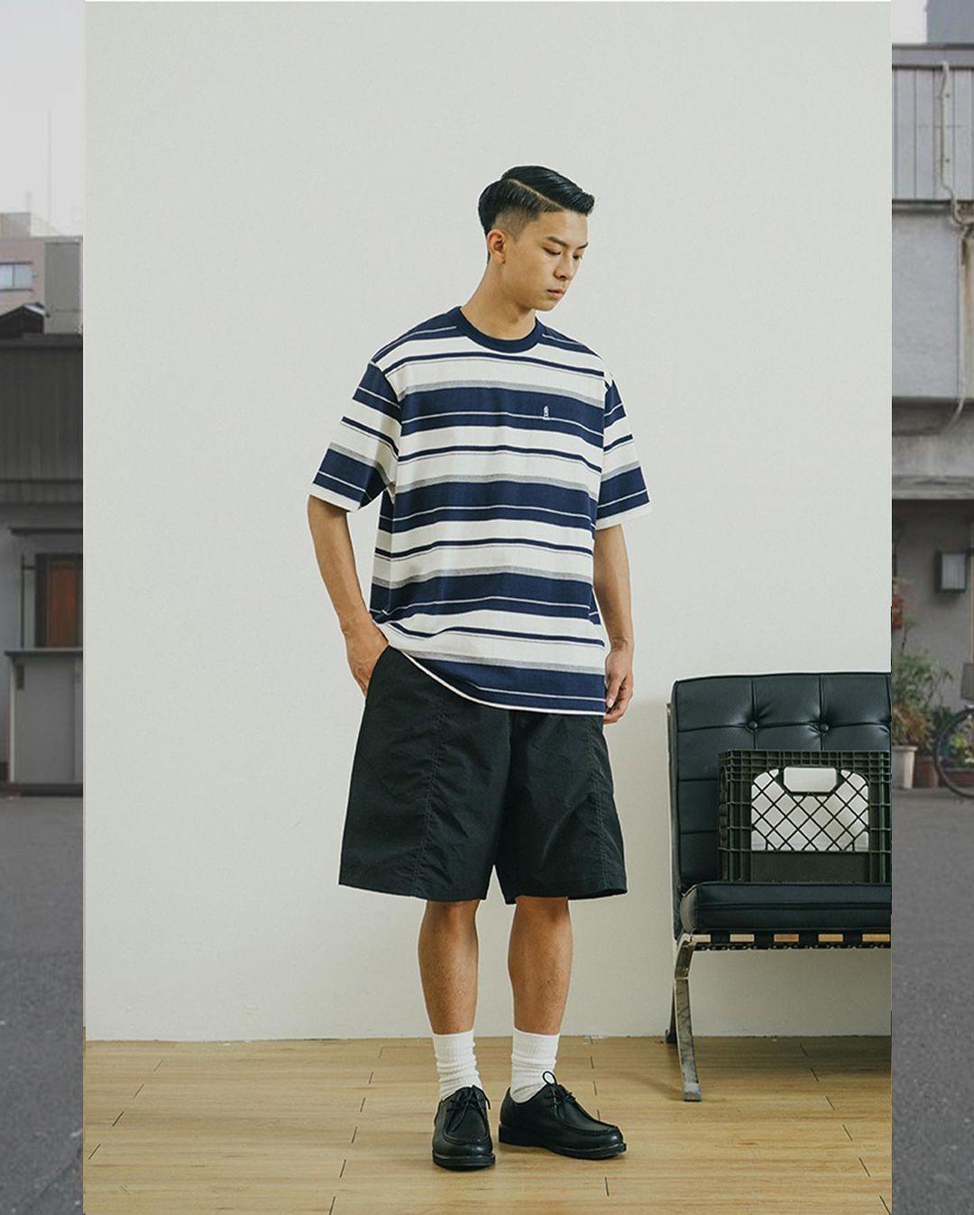 No matter what type of item it is, when wearing When building, you must follow the law of “combination of dark and light”. This matching pattern is to make your look more coordinated. Dark-colored shirts have a more mature appearance, so matching them with light-colored shorts can improve your personality and fashion.
