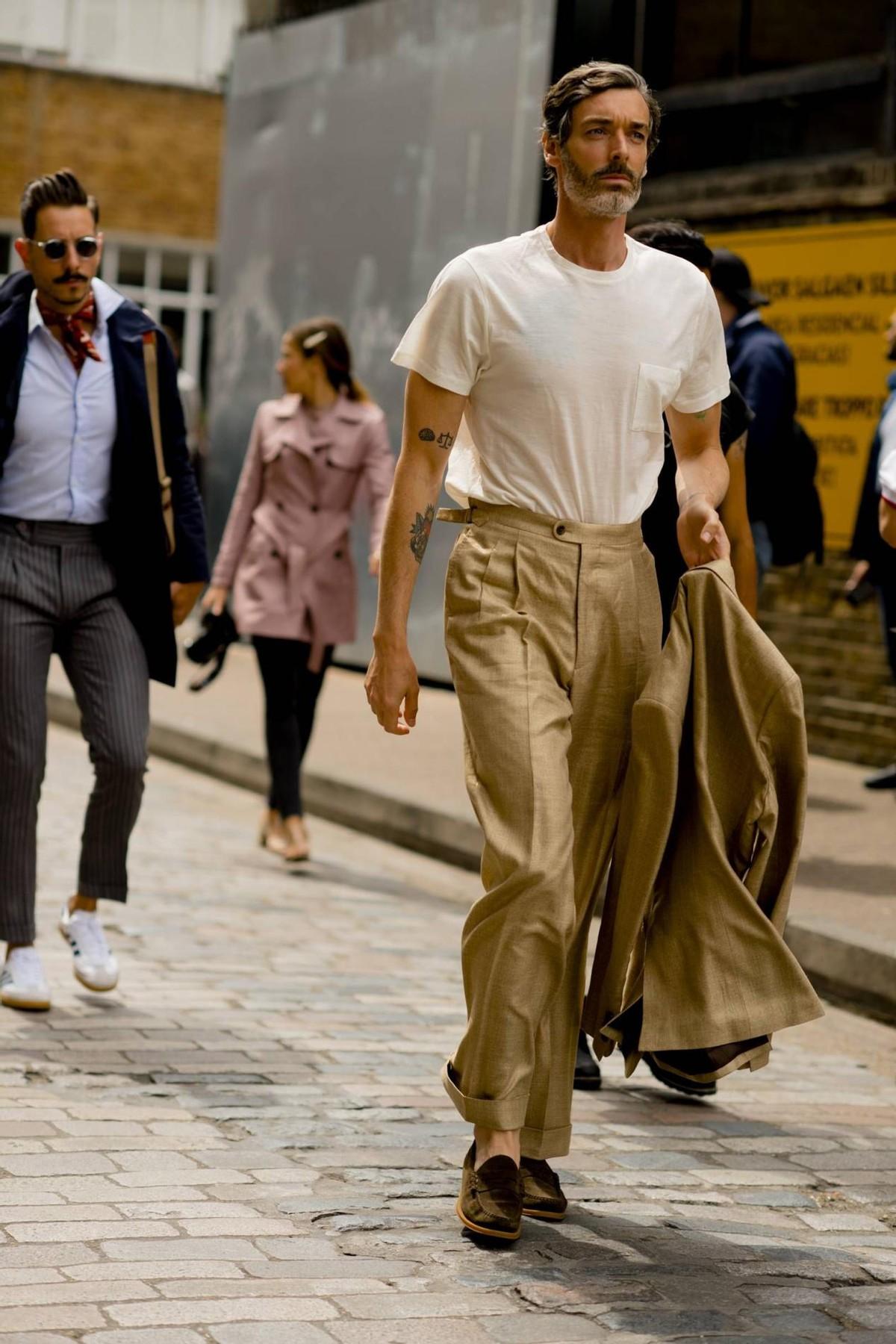 Compared with layering, simple clothing appears more frequently in men’s outfits. A simple top paired with a pair of trousers completes the simple look without any difficulty.