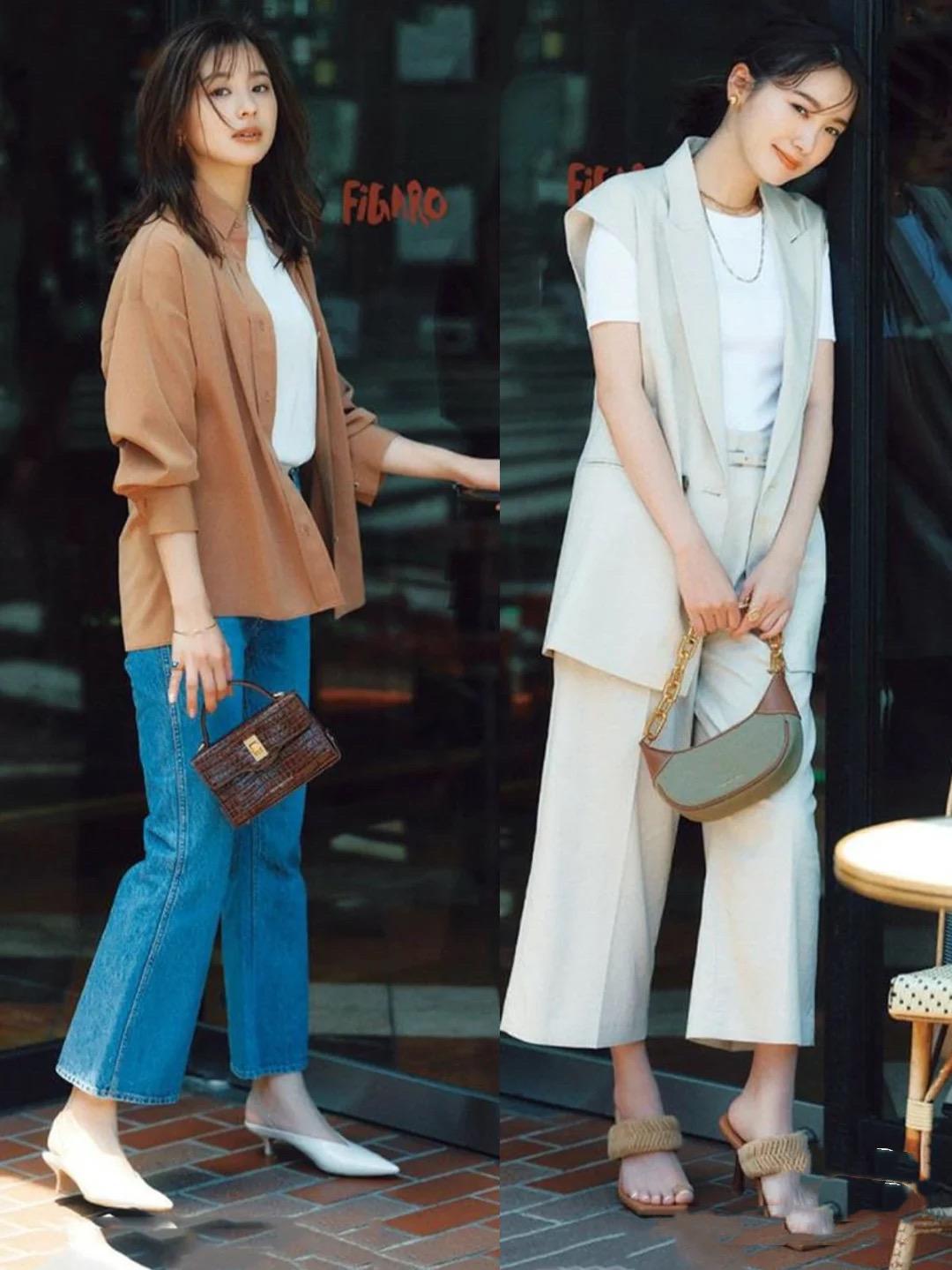 Basic white T-shirt and high-waisted tapered pants are also a neat, refreshing and capable combination . Women in their thirties and forties have a high-end aura, and refreshing and stylish outfits are more in line with their tastes.