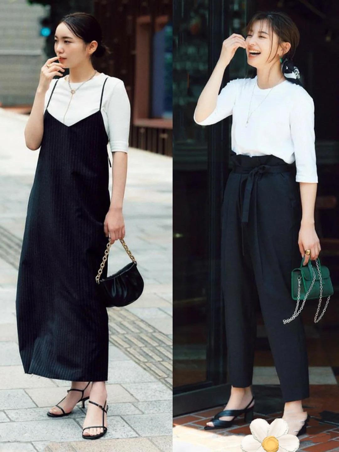 White T-shirt, the most versatile and advanced way to wear it, is the classic black and white combination. A white T-shirt paired with a black tank top is a relatively age-reducing way of dressing. Women in their thirties and forties who want their style and temperament to look younger can choose this refreshing and comfortable combination.