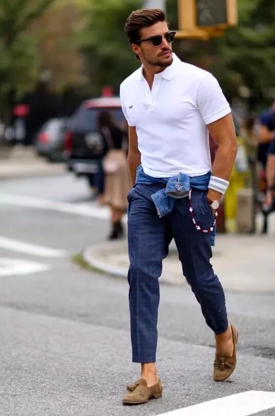 Jeans have always been known as the “king” in the dressing world. They can easily resolve all embarrassments, so if you are a novice in POLO shirts, you might as well try it. Paired with jeans, it looks cool yet stylish.