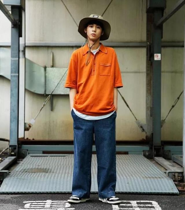 When��, if you want to try bright colors, you can do that. Pair a POLO shirt with straight jeans, workwear elements mixed with hip-hop elements, and it will look super fashionable.