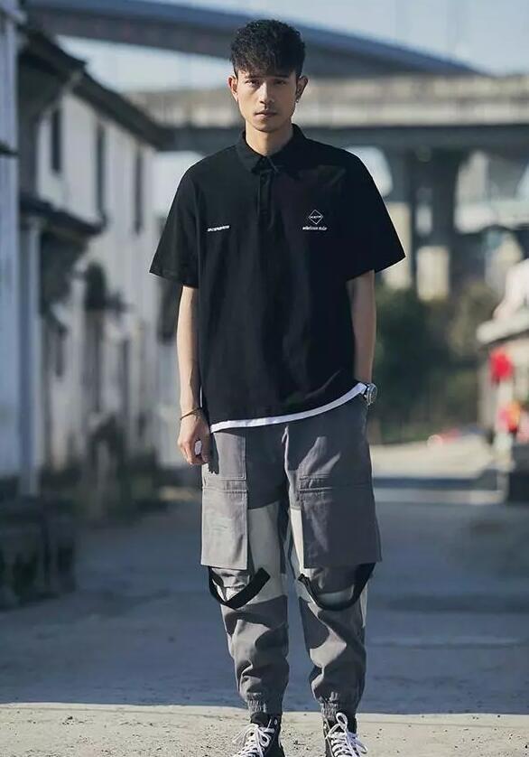 If you want to be more fashionable and refreshing, you might as well try pairing it with nine-point trousers. Pair a pure black POLO shirt with loose trousers. Handsome and super stylish.