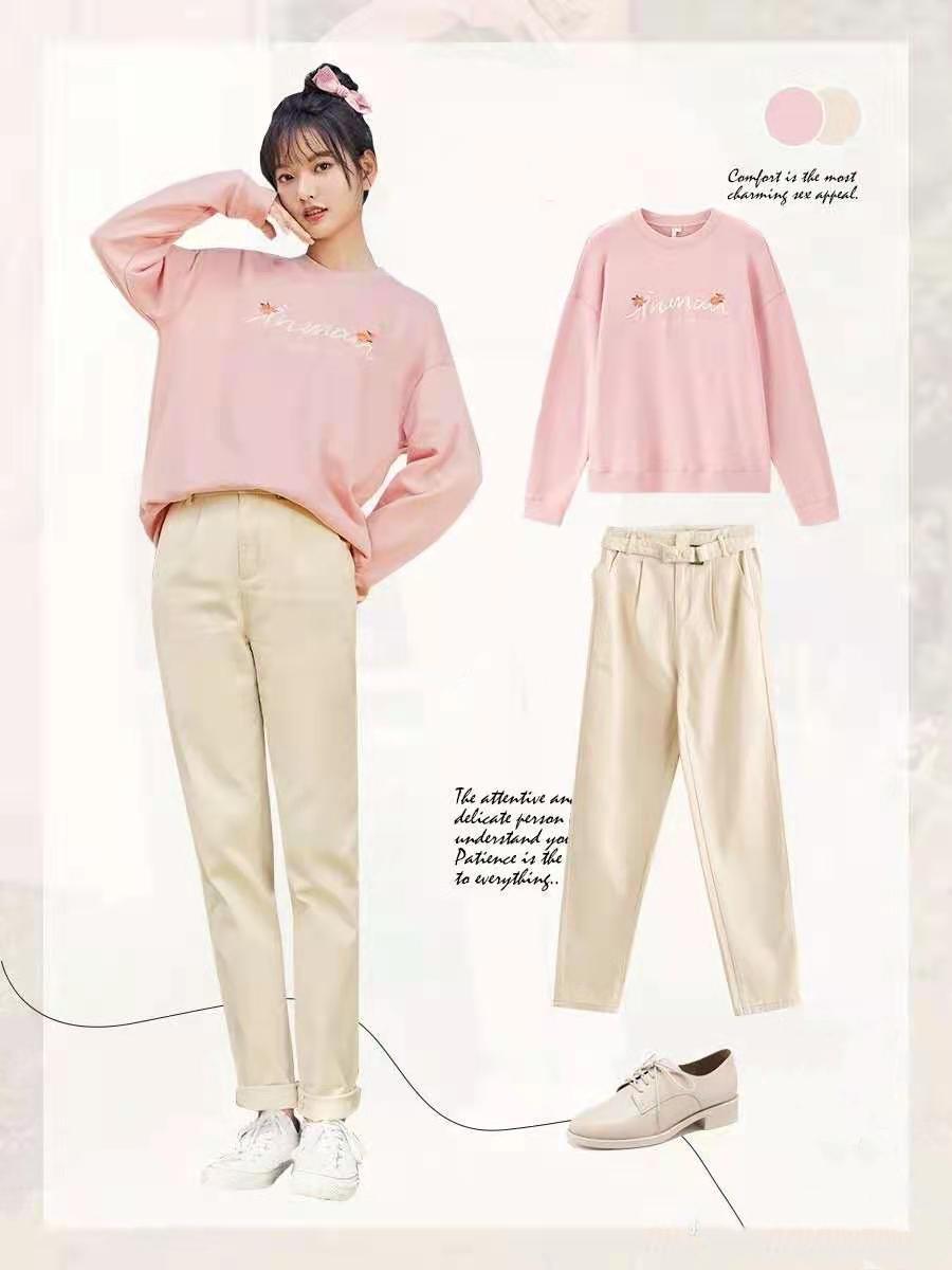 There is nothing wrong with young girls liking pink. After all, cute girls are quite popular. The basic sweatshirt combines pink, which is not so childish, but very sweet. Coupled with the help of white casual trousers, the vitality of the students is vividly displayed. Girls who are worried about the pink color being too tender can try using white to neutralize it, so they don’t have to worry about not being able to control it.