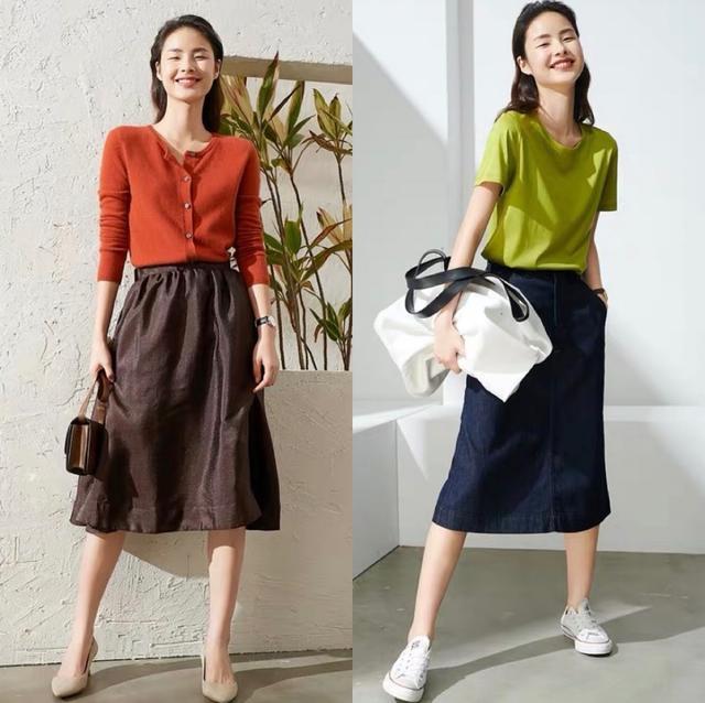 The eye-catching orange top paired with a dark brown skirt is the most popular knitted T-shirt this year, especially It is easy to control, versatile and wearable regardless of body shape. Compared with pure cotton T-shirts, it has a little more details, looks more connotative, and enhances your sense of temperament.