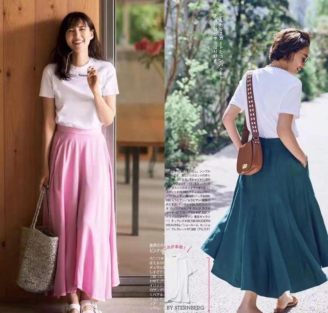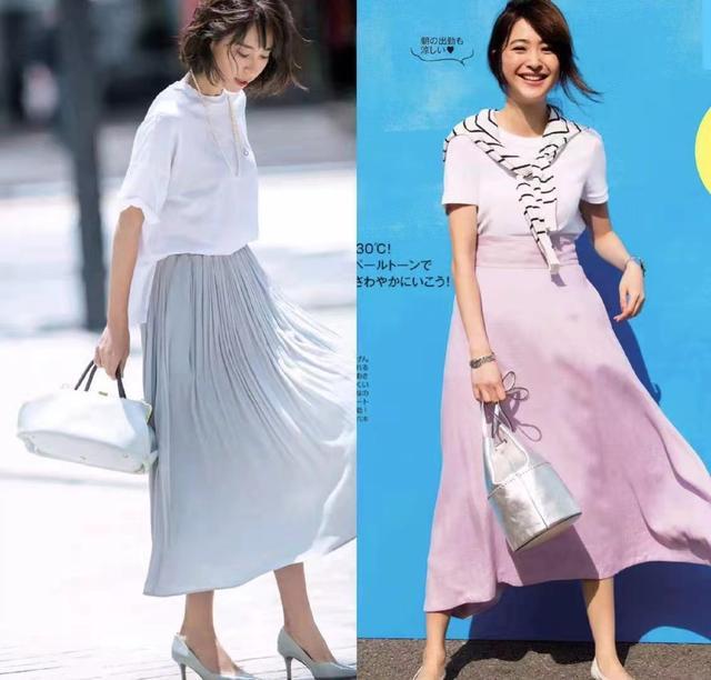 Women naturally like to wear elegant skirts, which can bring out their unique charm, so they have always It has always been very popular. If you are a mature woman in your thirties or forties, then you should choose a light-colored skirt and pair it with a white T-shirt, which will look very gentle and reduce your age. For example, a sweet and delicate pink skirt will look more ladylike and elegant when paired with white.