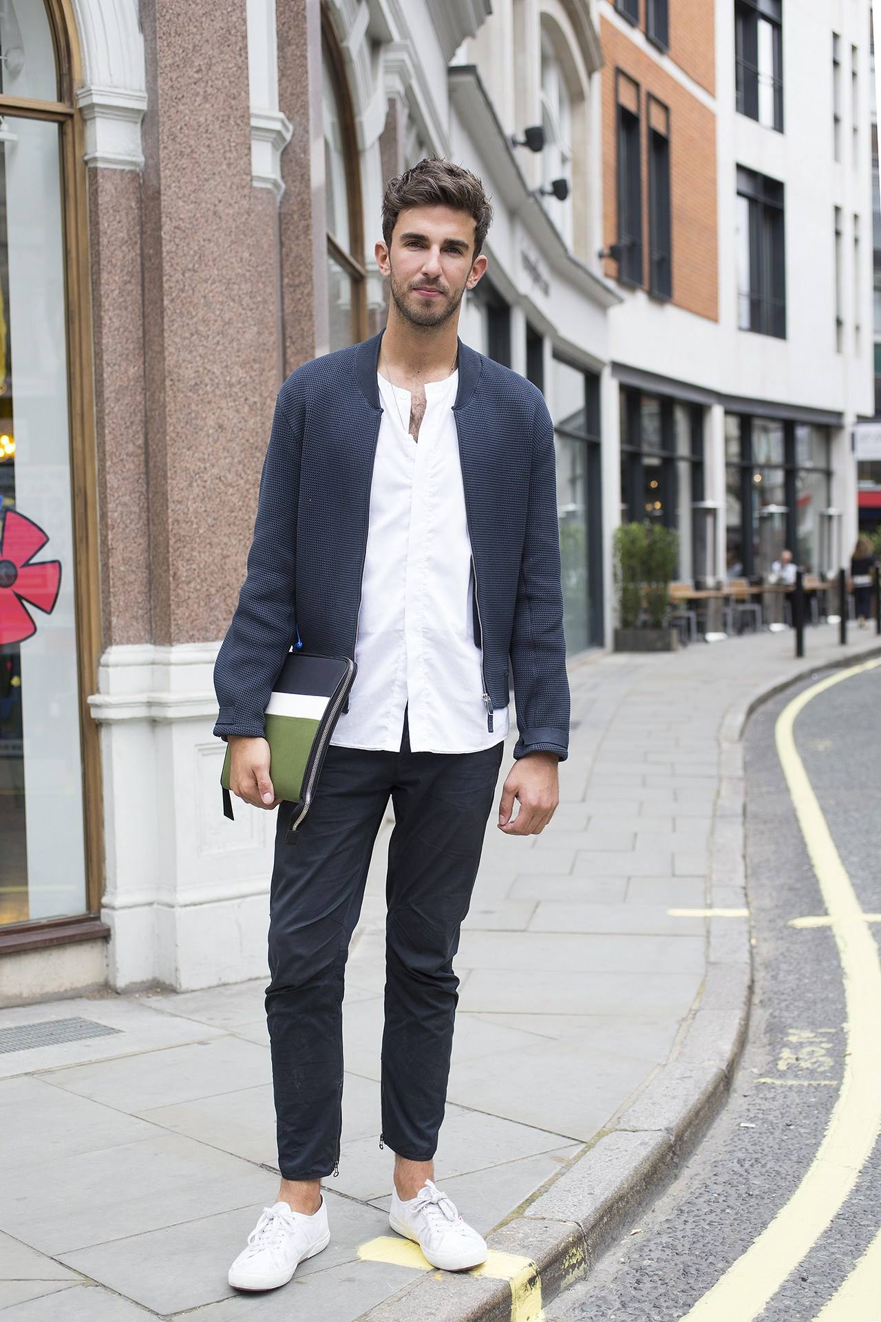2. Embroidered sweater + denim trousers + sports sneakers Embroidery has always been an essential element in China with a rich cultural atmosphere. Even simple embroidery on clothes will It makes people feel refined and elegant. A simple embroidered sweater, coupled with a simple pair of jeans and a pair of sports sneakers, can instantly turn an ordinary boy into an elegant and warm-toned boy. Makes people feel better!