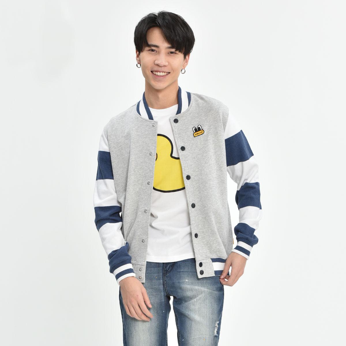 Your youth has several colors. This baseball jacket uses blue and white striped sleeves and a gray body. It is not only simple but also energetic. Pure cotton fabric is very suitable for clothing that wants to create a youthful look, and it is as clean as the clear sky.