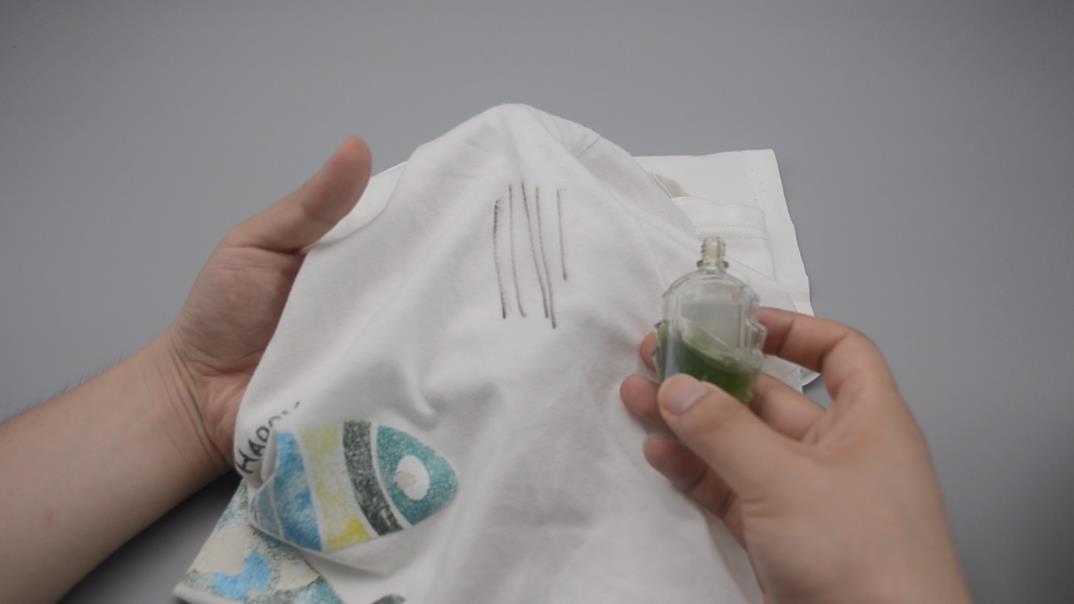 The third step is to pour a little water on the clothes and mark them with a marker. The place. Then rub the areas on the clothes that have the marker marks. We can see that the marker marks on the clothes are gradually fading.