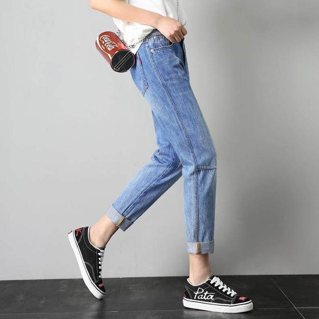 Denim is an indispensable element all year round. The slim straight version can easily modify the shape of the legs. The ripped design is casual and casual, full of personality, and paired with an American short sleeve, it is very retro style.