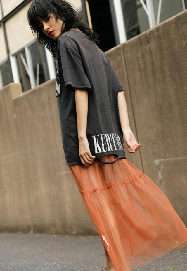 Loose T-shirt Among various T-shirt styles, it can be said that The safest style. For girls with fat on their waist and abdomen, a loose T-shirt is very necessary. For girls with less than perfect figures, tight-fitting styles should be chosen carefully. A chiffon skirt paired with a loose T-shirt is very artistic!