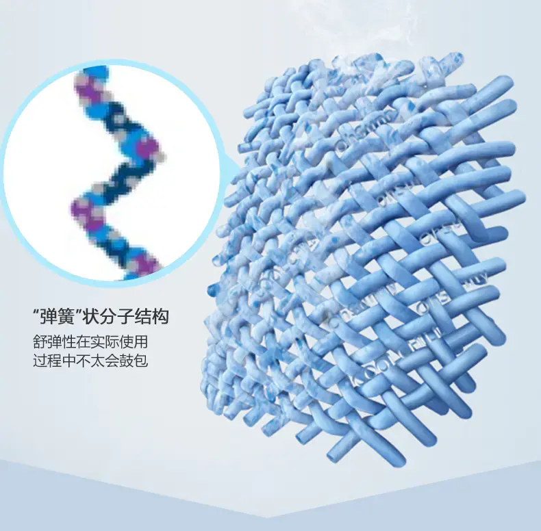 Note: The molecular structure of SORONA® fiber is “spring”-like. Compared with the general “linear” molecular structure fiber, it feels soft and full of elasticity